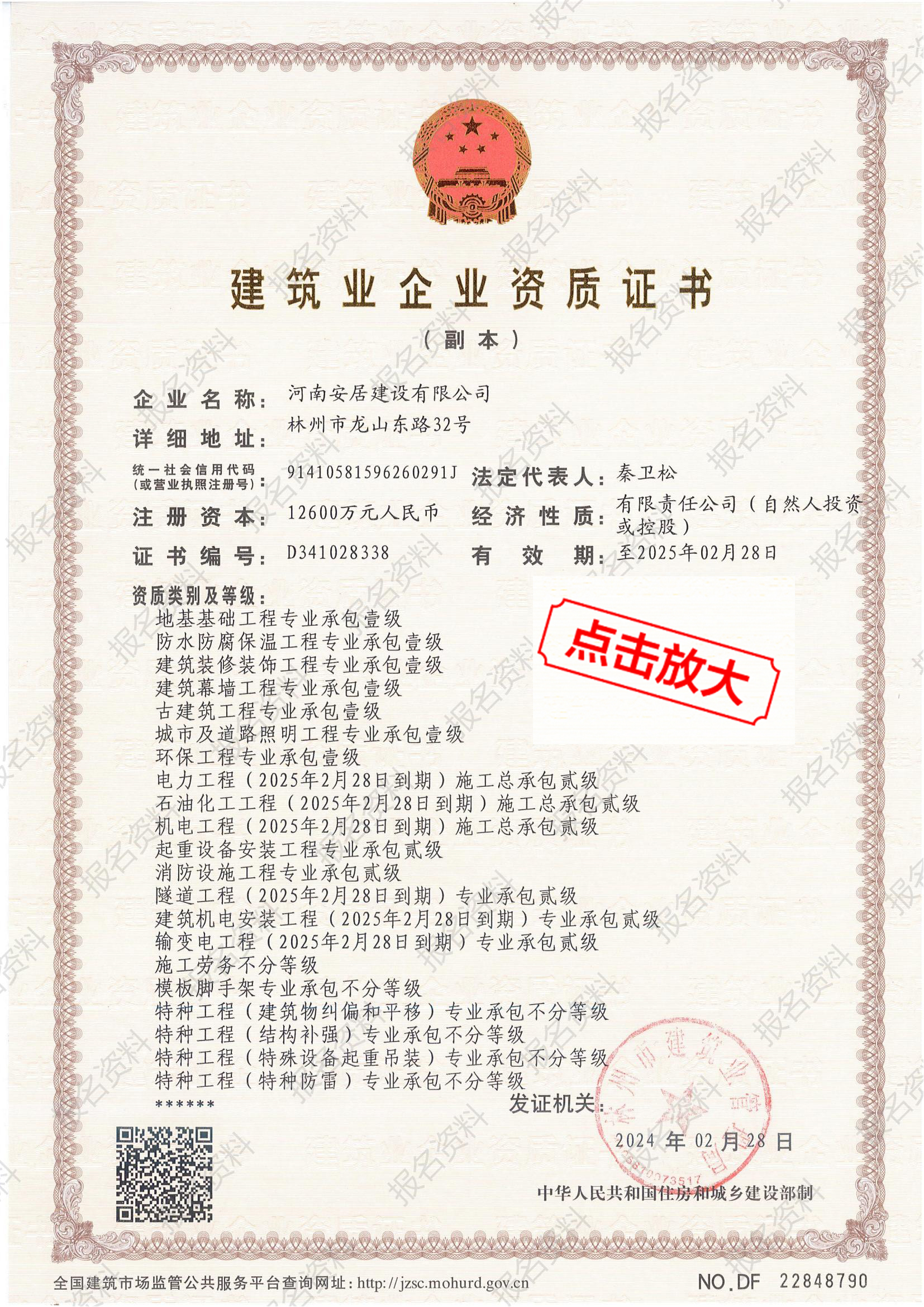 滔滔黃河哺育了中華民族拼搏向上的奮斗精神,巍巍太行造就了中原兒女的紅旗渠精神。百萬林州人下太行,鑄就了中國建筑之鄉(xiāng)響當當?shù)囊燮放啤:幽习簿咏ㄔO(shè)有限公司從誕生起血液里就流淌著紅色基因,秉承“安得廣夏千萬間,大庇天下寒士俱歡顏”的擔(dān)當精神,用鋼筋混凝土筑起了高樓大廈,也用一流品質(zhì)、家國情懷打造了安居建設(shè)的輝煌成績。公司成立于2012年,注冊資金12600萬元,公司成立至今,擁有建筑,市政施工總承包等十項一級資質(zhì);其他二級等資質(zhì)共二十余項。公司秉承質(zhì)量第一,服務(wù)為主,堅持垂直管理,從不設(shè)立分公司等分支機構(gòu)。